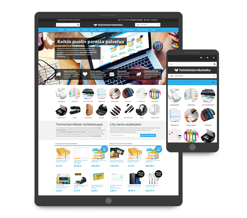 - Kolmen verkkokaupan julkaisu omalla alustalla